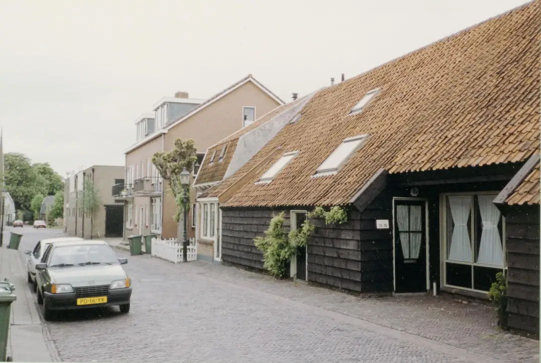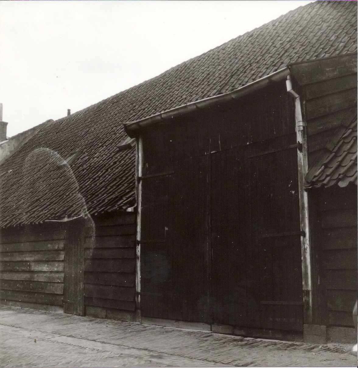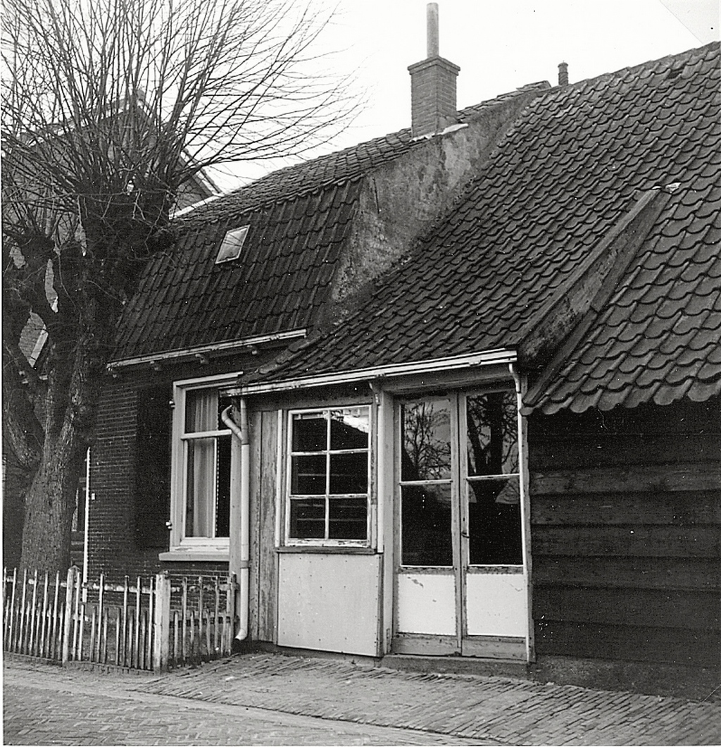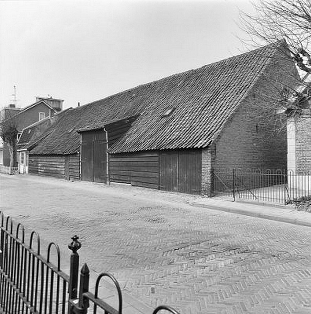 Oorspronkelijk een grote tabaksschuur met gepotdekselde wanden met een bakstenen voorhuis.Het dak van de tabaksschuur is links iets opgelicht. In dit gedeelte, dat twee vensters en een deur telt, heeft tientallen jaren een timmerwerkplaats gezeten.
