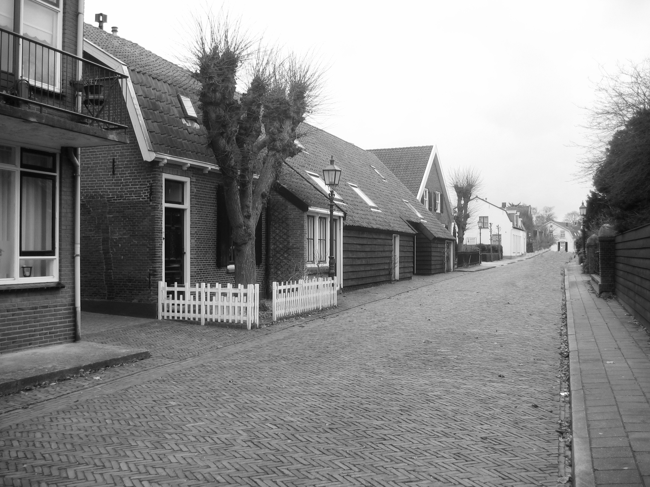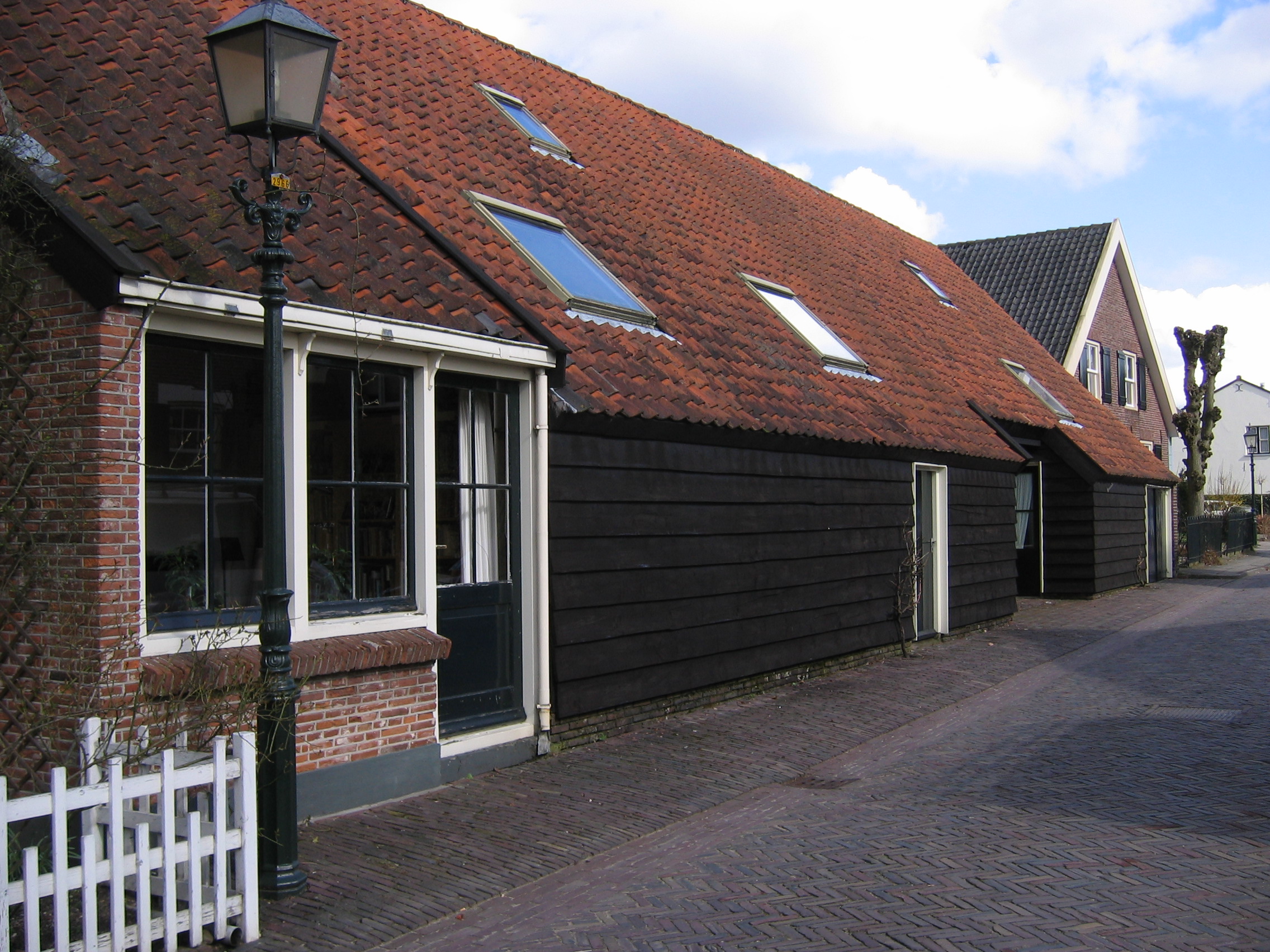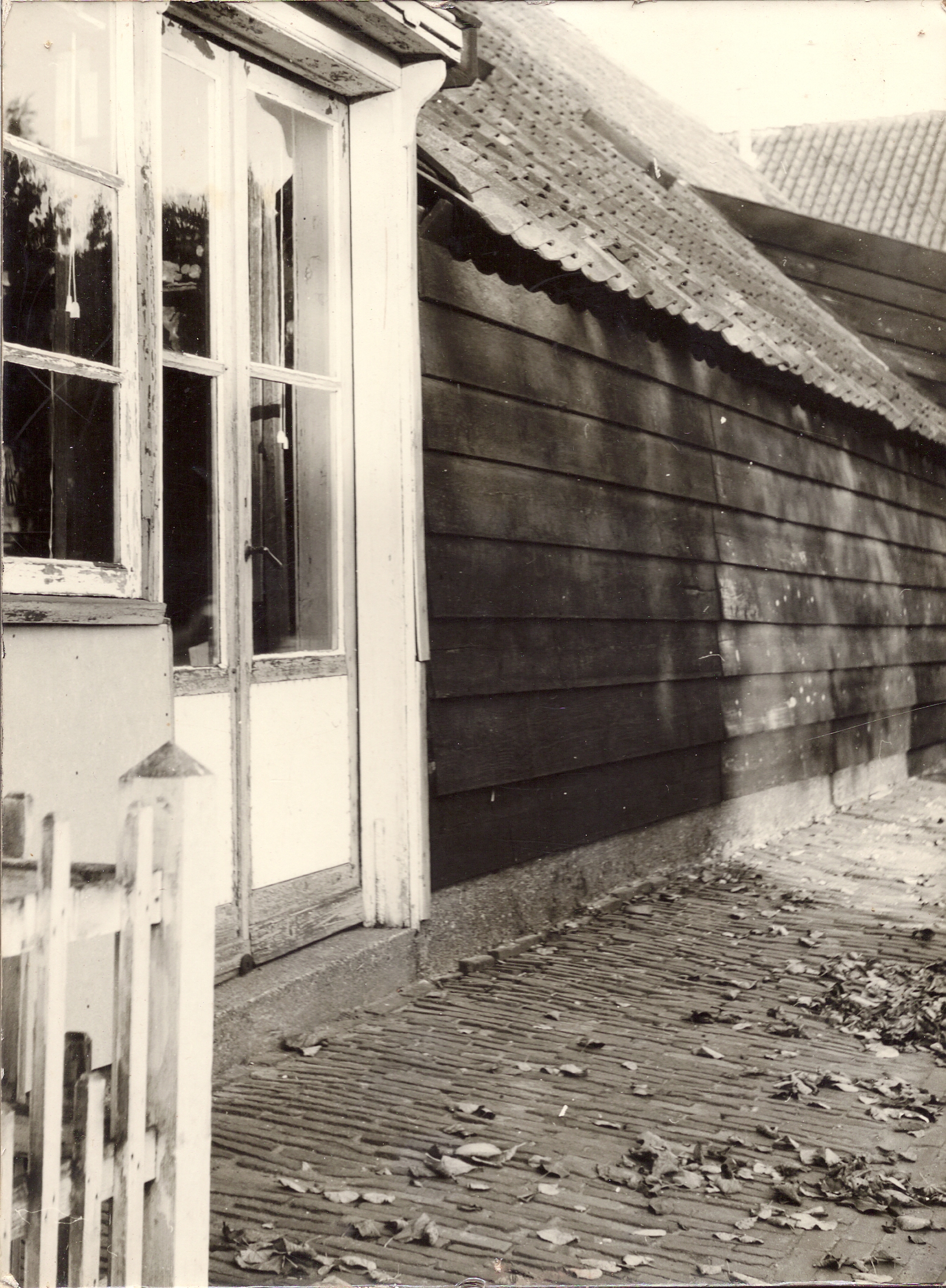 Oorspronkelijk een grote tabaksschuur met gepotdekselde wanden met een bakstenen voorhuis.Het dak van de tabaksschuur is links iets opgelicht. In dit gedeelte, dat twee vensters en een deur telt, heeft tientallen jaren een timmerwerkplaats gezeten.